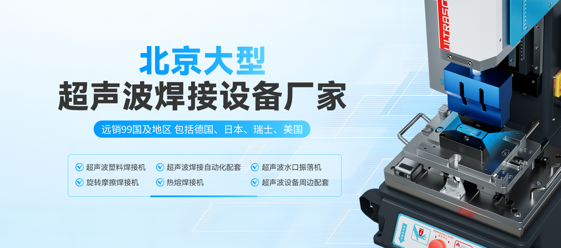 北京正宏尼可技術(shù)有限公司是一家從事,生產(chǎn)、銷售、服務(wù)為一體的,現(xiàn)代化技術(shù)企業(yè),公司主要開(kāi)發(fā)生產(chǎn)各種:超聲波塑料焊接設(shè)備、塑料熱熔設(shè)備、高頻熱合設(shè)備、各種濾芯焊接設(shè)備、汽車內(nèi)飾件焊接設(shè)備,塑料多點(diǎn)熱鉚機(jī),塑料熱板機(jī)、塑膠旋熔機(jī)、震動(dòng)摩擦焊等設(shè)備。